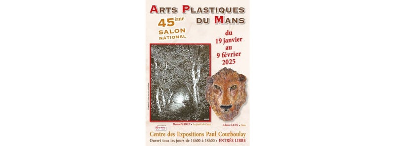 Le 45ème Salon national des Arts Plastiques du Mans se tiendra du dimanche 19 janvier au dimanche 9 février 2025, à la salle Paul Courboulay . Ce Salon regroupe les œuvres d'artistes, peintres et sculpteurs, venant de toute la France. Exposition visible tous les jours de 14h à 18h. Pour les scolaires, visites possibles le matin sur rendez-vous. Entrée libre.